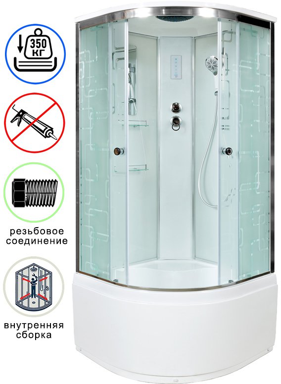 Душевая кабина Avacan EM4510EL AVA N 100x100 с электрикой, стекла с узором, профиль хром