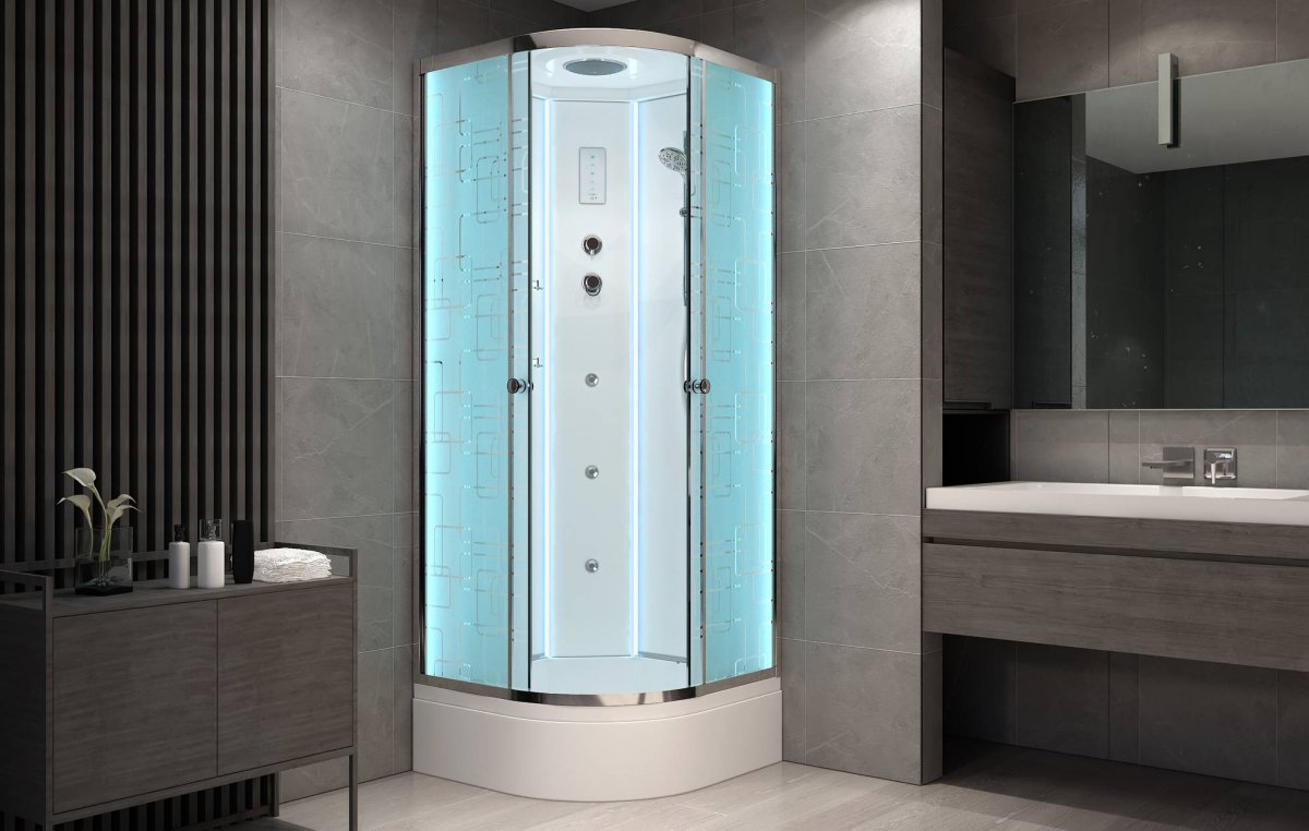 Душевая кабина Avacan EM2790LED AVA N 90x90 LED, стекла с узором, профиль хром