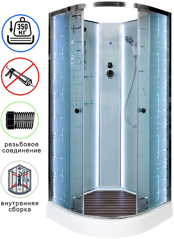 душевая кабина avacan em1590nled ava 90x90 б/к, led, стекла с узором, профиль хром