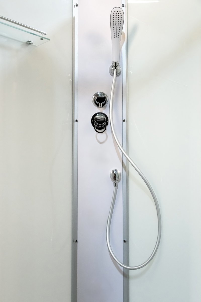 Стильная душевая кабина AvaCan L980 сочетает в себе высокую функциональность, практичность и надежность. Для изготовления применяют безопасное закаленное стекло толщиной 4 мм, надежно фиксируемое алюминиевым профилем. Цвет профиля - хром.