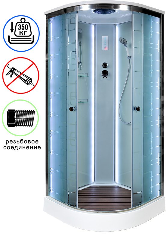 Душевая кабина Avacan EM1580LED AVA O 80x80 LED, стекла с узором, профиль хром