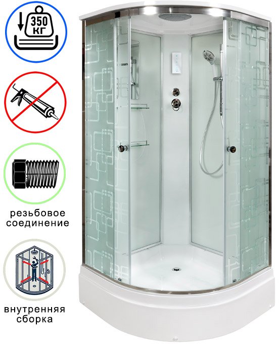Душевая кабина Avacan EM2710EL AVA N 100x100 с электрикой, стекла с узором, профиль хром
