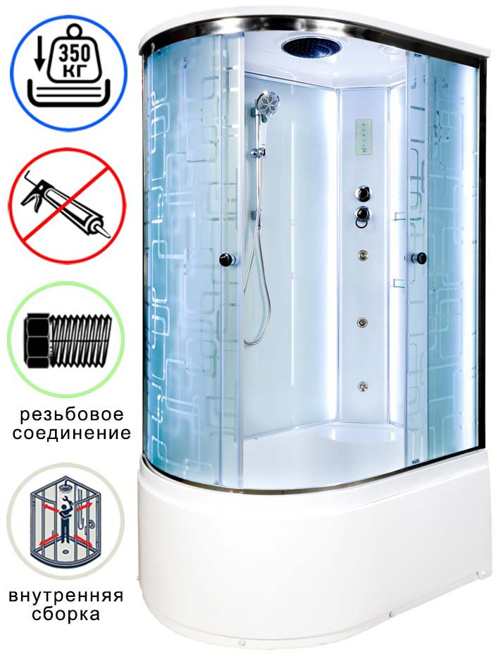 Душевая кабина Avacan EM4511RLED+GM AVA N 110x80 с LED и гидромассажем, правая, стекла с узором, профиль хром