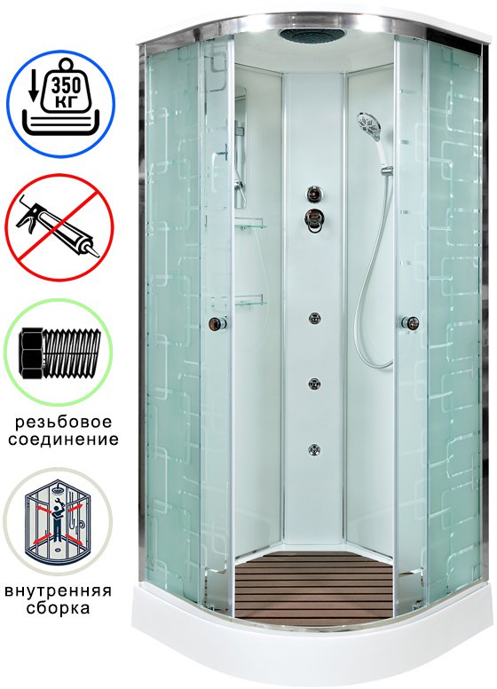 душевая кабина avacan em1580gm ava 80x80 с гидромассажем, стекла с узором, профиль хром