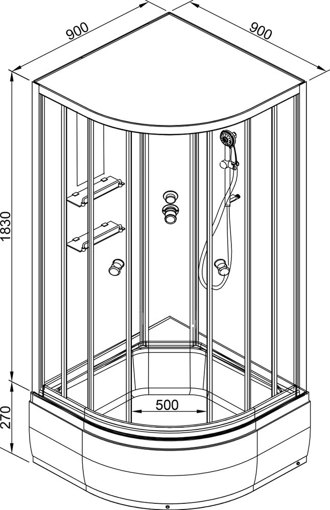Размеры (Д.;Ш.;В.): 90x90х208 см