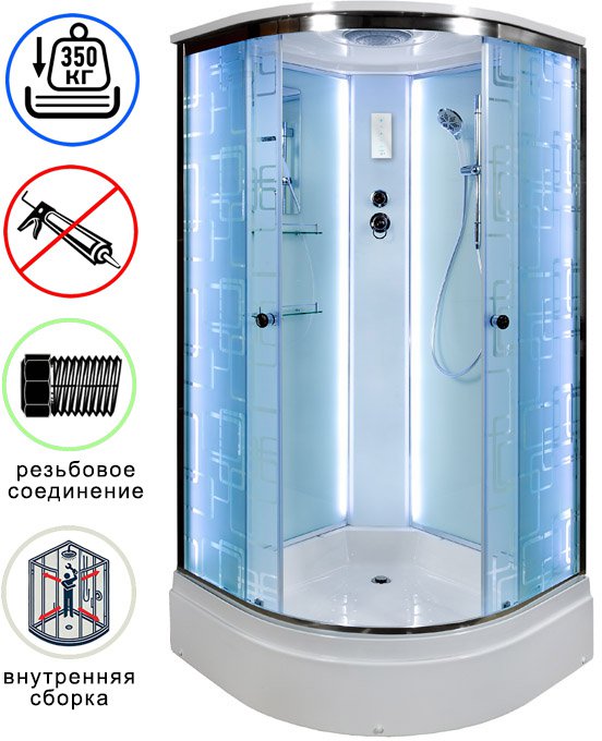Душевая кабина Avacan EM2710LED AVA N 100x100 LED, стекла с узором, профиль хром