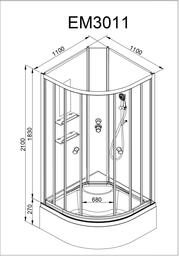 Стильная душевая кабина с внутренней сборкой AvaCan EM3011 N LED с гидромассажем сочетает в себе высокую функциональность, практичность и надежность. Для изготовления применяют безопасное закаленное стекло толщиной 5 мм, надежно фиксируемое алюминиевым профилем. Цвет профиля хром. В комплекте сифон, зеркало, душевой гарнитур, полочки, гидромассажные форсунки, led-подсветка, смеситель, переключатель режимов.