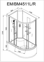 Стильная душевая кабина AvaCan EM 4511 N R сочетает в себе высокую функциональность, практичность и надежность. Для изготовления применяют безопасное закаленное стекло толщиной 5 мм, надежно фиксируемое алюминиевым профилем. Цвет профиля хром. В комплекте зеркало, донный клапан (клик-клак), переключатель режимов, смеситель, полочки.