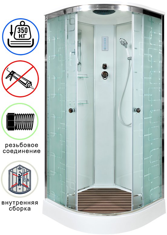 Душевая кабина Avacan EM1590EL AVA N 90x90 с электрикой, стекла с узором, профиль хром