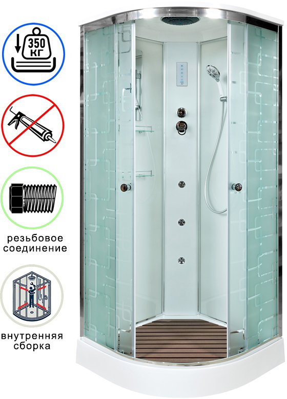 Душевая кабина Avacan EM1510GM+EL AVA N 100x100 с гидромассажем и электрикой, стекла с узором, профиль хром