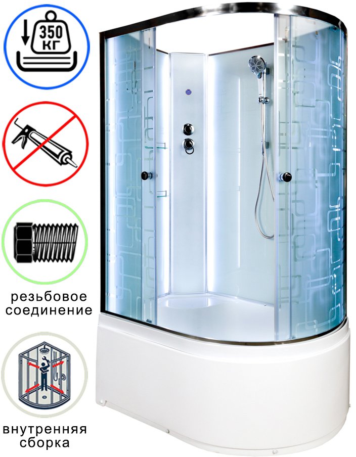 душевая кабина avacan em5012lnled ava 120x90 б/к, led, левая, стекла с рисунком, профиль хром