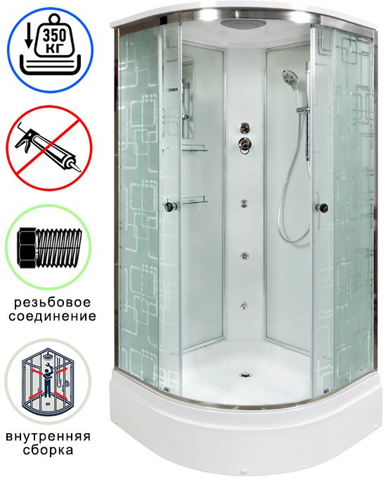 душевая кабина avacan em3011gm ava 110x110 с гидромассажем, стекла с узором, профиль хром