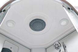 Стильная душевая кабина с внутренней сборкой AvaCan EM2790 с электрикой сочетает в себе высокую функциональность, практичность и надежность. Для изготовления применяют безопасное закаленное стекло толщиной 5 мм, надежно фиксируемое алюминиевым профилем. Цвет профиля хром. В комплекте сифон, зеркало, сенсорный пульт управления, душевой гарнитур, полочки, смеситель, переключатель режимов, тропический (верхний) душ, вентиляция, радио.