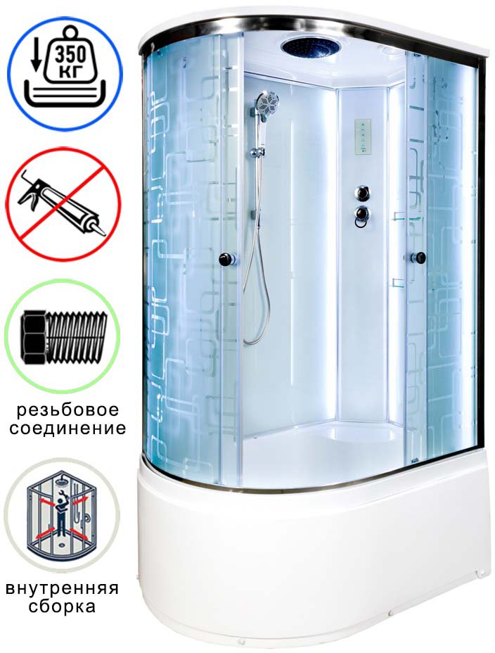 Душевая кабина Avacan EM5012RLED AVA N 120x90 LED, правая, стекла с рисунком, профиль хром