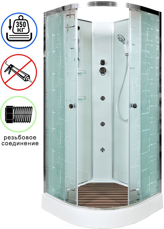 душевая кабина avacan em1580ngm ava o 80x80 б/к, с гидромассажем, стекла с узором, профиль хром