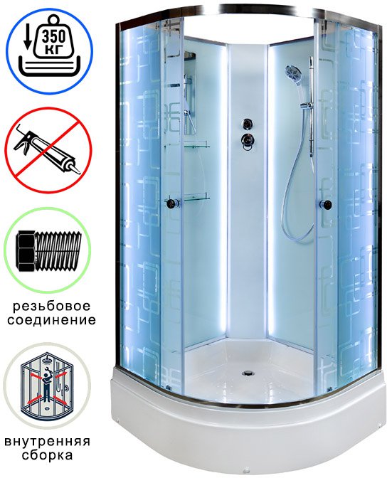 душевая кабина avacan em2710nled ava 100x100 б/к, led, стекла с узором, профиль хром