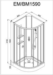 Стильная душевая кабина AvaCan EM 1590 N с гидромассажем сочетает в себе высокую функциональность, практичность и надежность. Для изготовления применяют безопасное закаленное стекло толщиной 5 мм, надежно фиксируемое алюминиевым профилем. Цвет профиля хром. В комплекте зеркало, смеситель, деревянная вставка в поддон, переключатель режимов, вентиляция, полочки, гидромассажные форсунки.