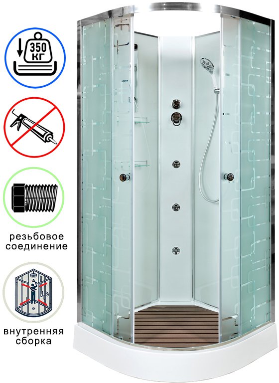 душевая кабина avacan em1590ngm ava 90x90 б/г, с гидромассажем, стекла с узором, профиль хром