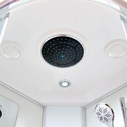 Стильная душевая кабина AvaCan EM 1590 с гидромассажем и электрикой сочетает в себе высокую функциональность, практичность и надежность. Для изготовления применяют безопасное закаленное стекло толщиной 5 мм, надежно фиксируемое алюминиевым профилем. Цвет профиля хром. В комплекте зеркало, сенсорный пульт управления, душевой гарнитур, смеситель, тропический (верхний) душ, деревянная вставка в поддон, переключатель режимов, вентиляция, полочки, гидромассажные форсунки, тропический (верхний) душ, вентиляция, радио.