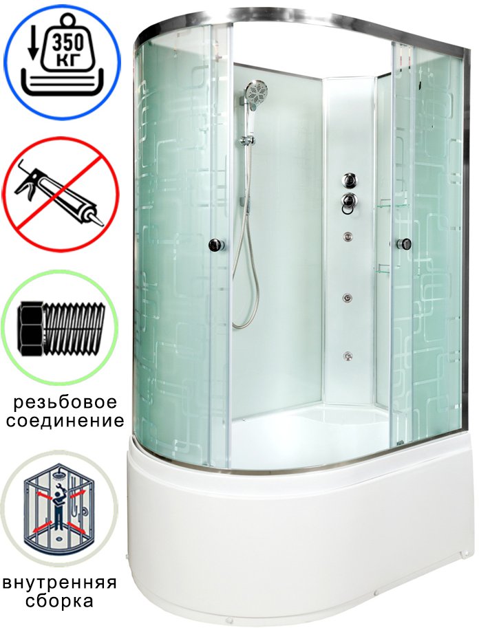 душевая кабина avacan em5012rngm ava 120x90 б/к, с гидромассажем, правая, стекла с рисунком, профиль хром