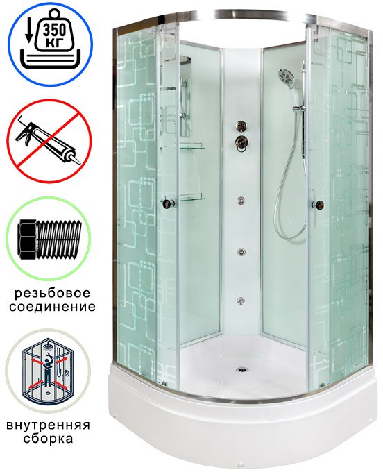 душевая кабина avacan em2710ngm ava 100x100 б/к с гидромассажем, стекла с узором, профиль хром