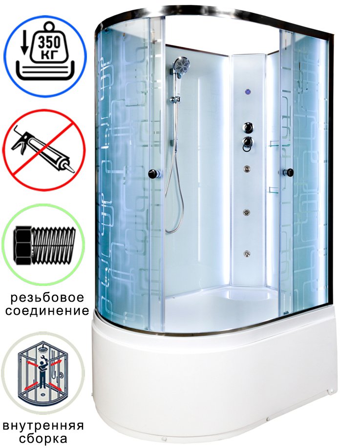 Душевая кабина Avacan EM5012RNLED+GM AVA N 120x90 б/к, с LED и гидромассажем, правая, стекла с рисунком, профиль хром