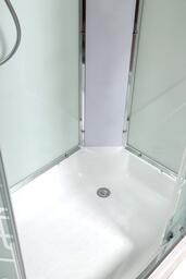 Стильная душевая кабина с внутренней сборкой AvaCan EM3012 N L LED сочетает в себе высокую функциональность, практичность и надежность. Для изготовления применяют безопасное закаленное стекло толщиной 5 мм, надежно фиксируемое алюминиевым профилем. Цвет профиля хром. В комплекте зеркало, душевой гарнитур, полочки.