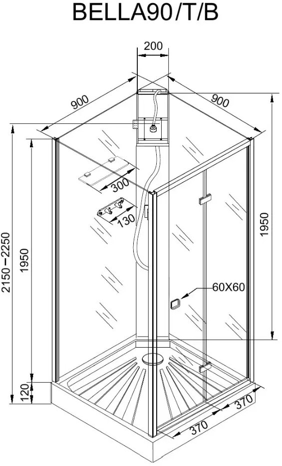 Размеры (Д.;Ш.;В.): 90x90х215-225 см