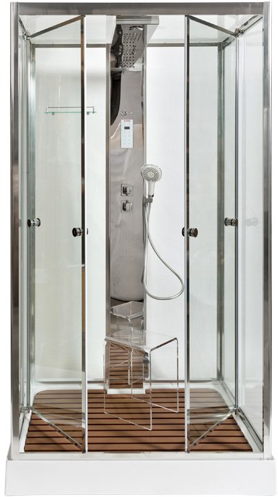 Стильная душевая кабина с внутренней сборкой AvaCan Z122 Espoo с баней сочетает в себе высокую функциональность, практичность и надежность. Для изготовления применяют безопасное закаленное стекло толщиной 6 мм, надежно фиксируемое алюминиевым профилем. Цвет профиля хром. В комплекте душевой гарнитур, тропический (верхний) душ, гидромассажные форсунки, деревянная вставка в поддон.