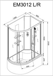 Стильная душевая кабина с внутренней сборкой AvaCan EM 3012 N R с гидромассажем сочетает в себе высокую функциональность, практичность и надежность. Для изготовления применяют безопасное закаленное стекло толщиной 5 мм, надежно фиксируемое алюминиевым профилем. Цвет профиля хром. В комплекте зеркало, душевой гарнитур, смеситель, переключатель режимов, полочки, гидромассажные форсунки.