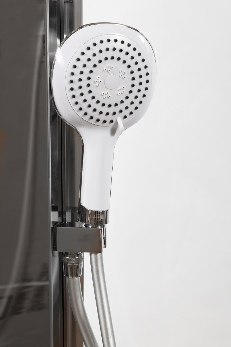 Стильная душевая кабина с внутренней сборкой AvaCan Z122 Espoo сочетает в себе высокую функциональность, практичность и надежность. Для изготовления применяют безопасное закаленное стекло толщиной 6 мм, надежно фиксируемое алюминиевым профилем. Цвет профиля хром. В комплекте душевой гарнитур, тропический (верхний) душ, гидромассажные форсунки, деревянная вставка в поддон.