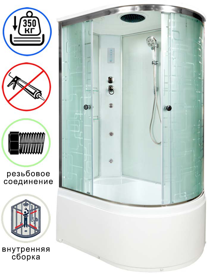 Душевая кабина Avacan EM5012LGM+EL AVA N 120x90 с гидромассажем и электрикой, левая, стекла с рисунком, профиль хром
