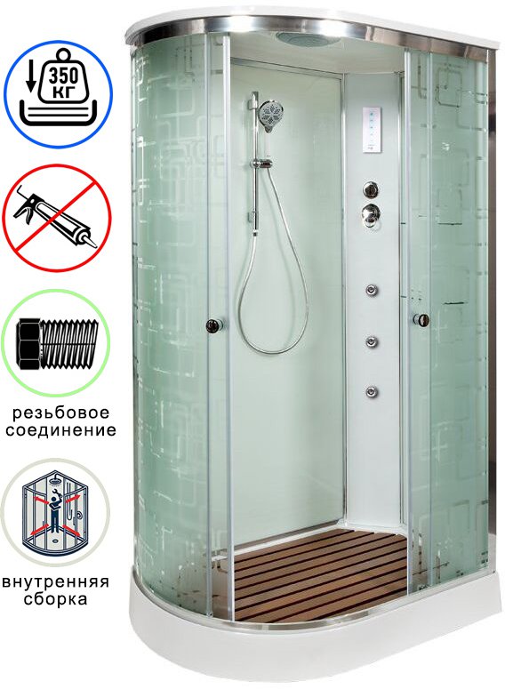 Душевая кабина Avacan EM1511RGM+EL AVA N 110x80 с гидромассажем и электрикой, правая, стекла с узором, профиль хром