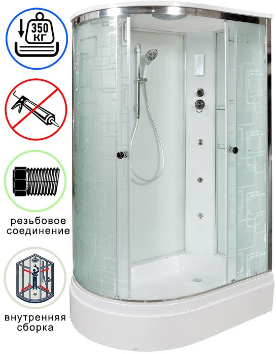 Душевая кабина Avacan EM3012RGM+EL AVA N 120x90 с гидромассажем и электрикой, правая, стекла с узором, профиль хром