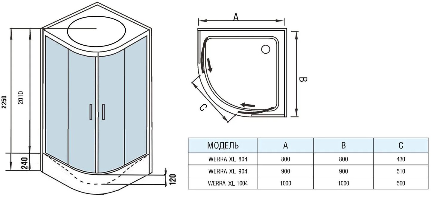 душевая кабина welt-wasser werra xl 904 90x90 стекла прозрачные, профиль хром