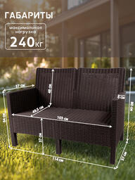 Диван садовый ВПМ Ротанг 2-х местный / 6199262 (темно-коричневый)