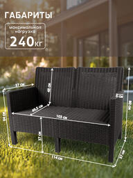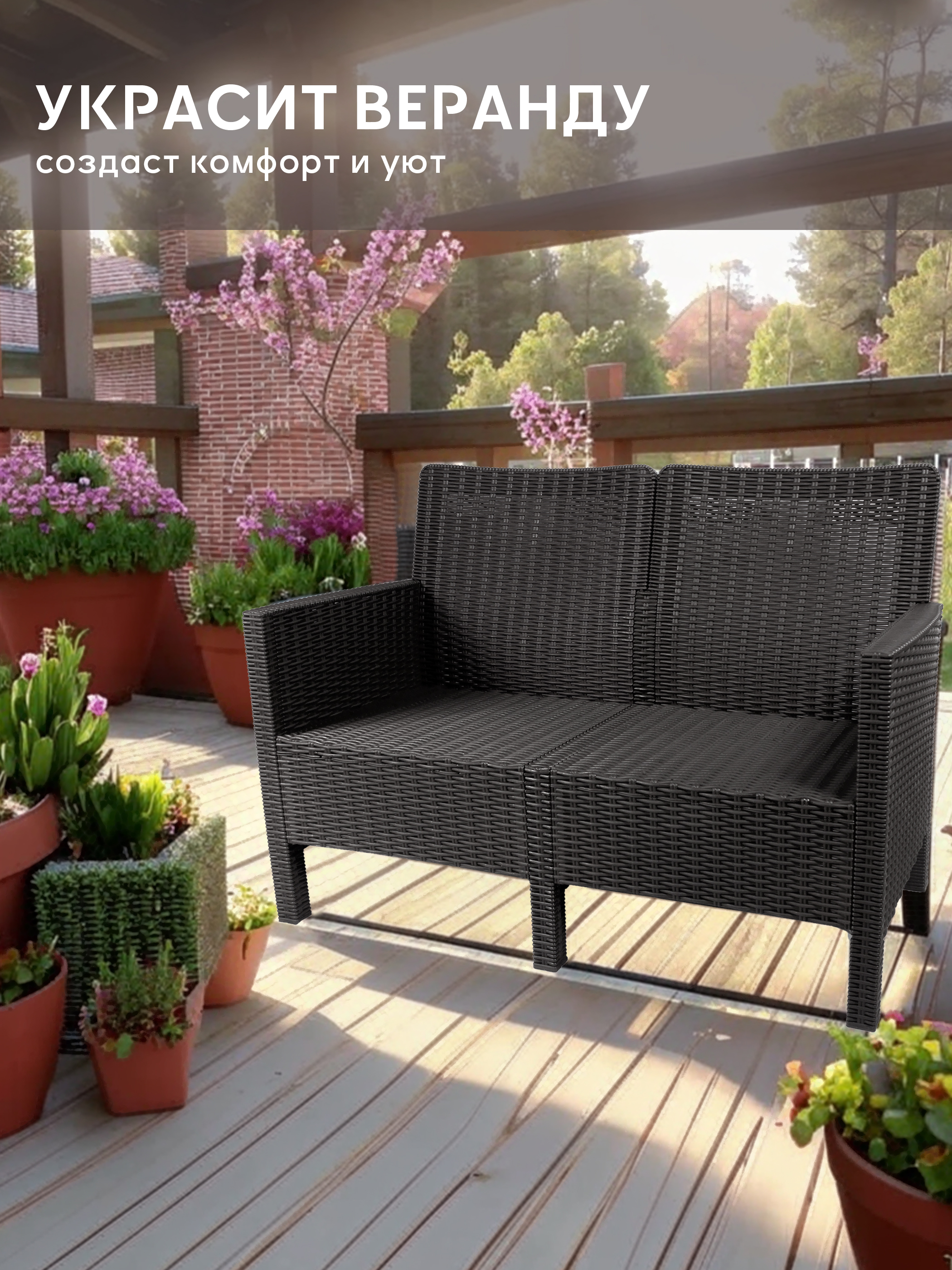 Диван садовый ВПМ Ротанг 2-х местный / 6199261 (темно-серый)