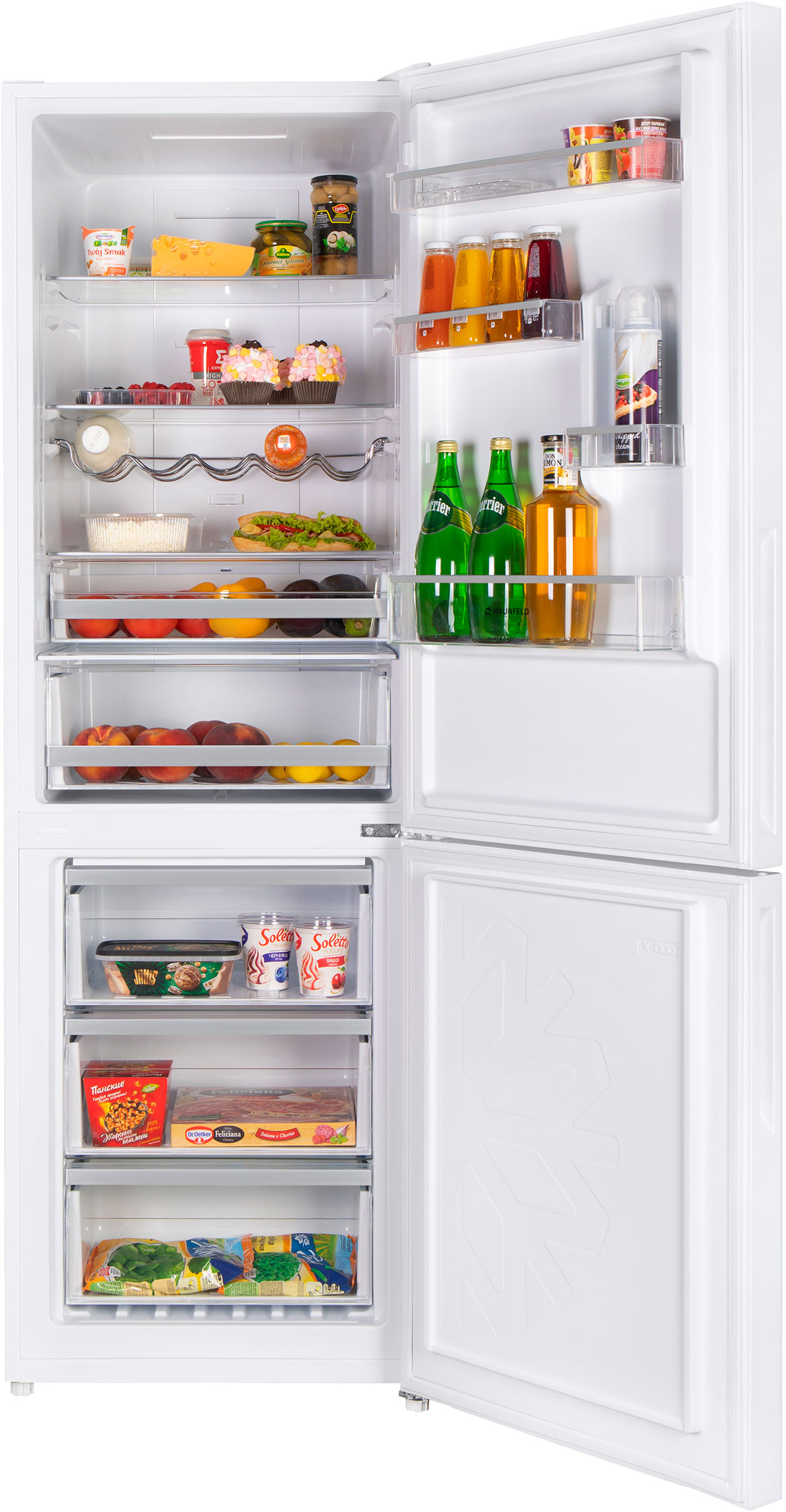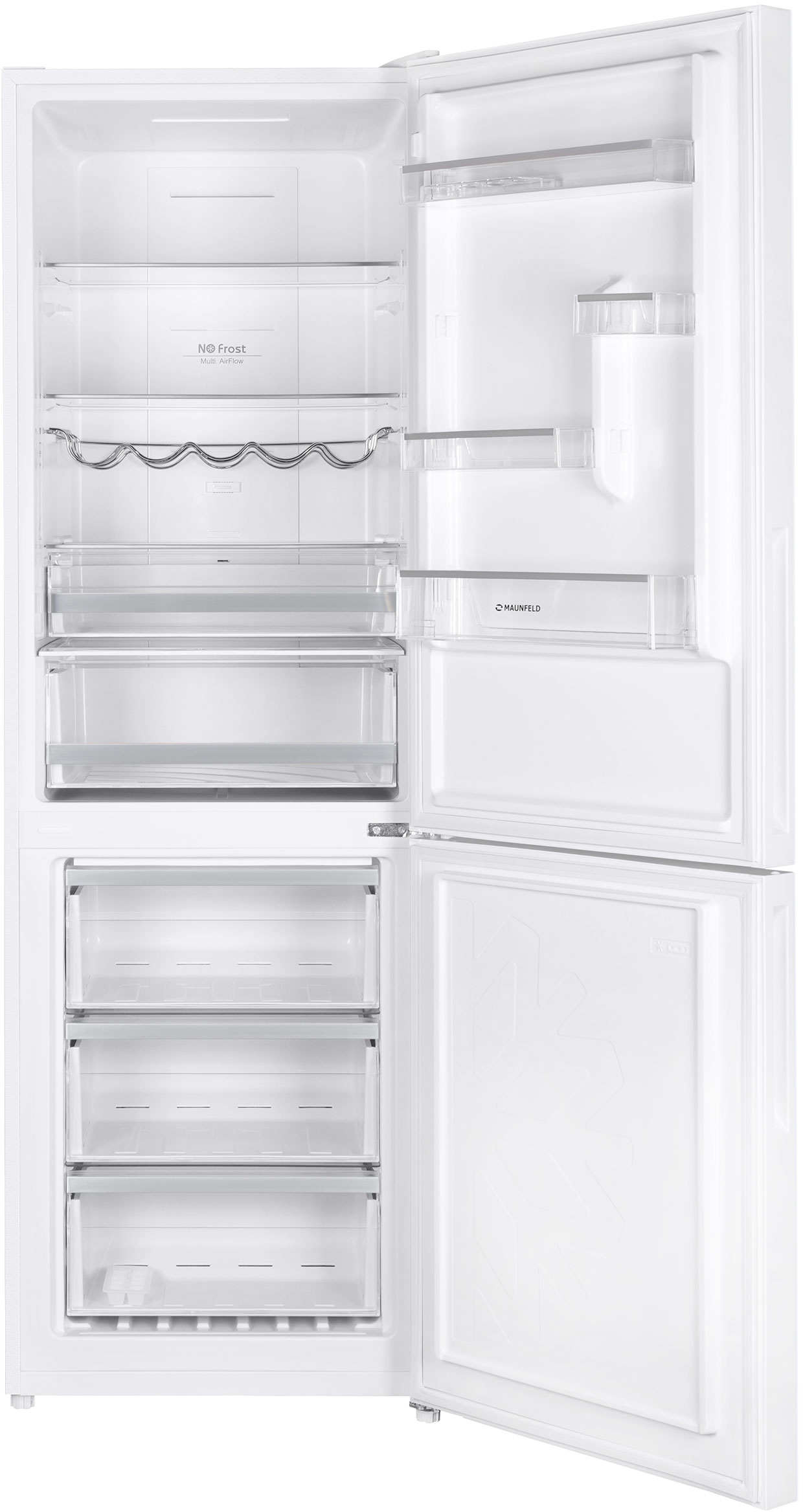 Холодильник MAUNFELD/ Холодильник отдельностоящий, 595 X 635 X 1850 мм, ST, полезный объем 317 л, Nofrost, сенсорное управление, LED освещение, энергоэффективность А+, нижняя морозильная камера, хладагент R600A, стандартный компрессор, цвет белый