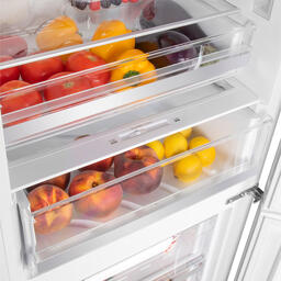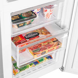Система охлаждения всего холодильника - «No Frost». При использовании данной технологии, холодный сухой воздух равномерно распределяется при помощи вентилятора по всей камере. Благодаря этому на продуктах и внутренних поверхностях прибора не образовывается иней. Теперь вам никогда не придется размораживать холодильник.