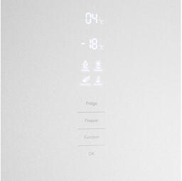 Белый двухкамерный холодильник объемом 340 л и высотой 185 см с сенсорным управлением.
