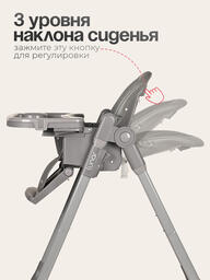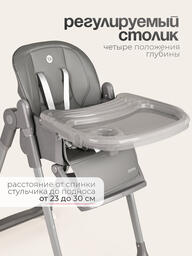 • Возможности регулировки высота сиденья (6 положений), наклон спинки (3 положения), расстояние от столика до спинки, высота ремней, наклон подножки