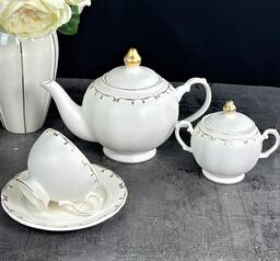 - В наборе чайник (1 шт.), сахарница (1 шт.), блюдце (6 шт.), чашка (6 шт.)