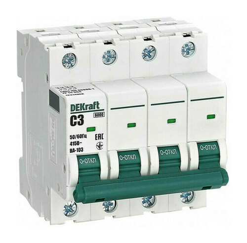 Автоматический выключатель DekRaft ВА-103 NEW, 4 полюса, 3А, С, 6 кА 12314DEK DEKraft ВА-103