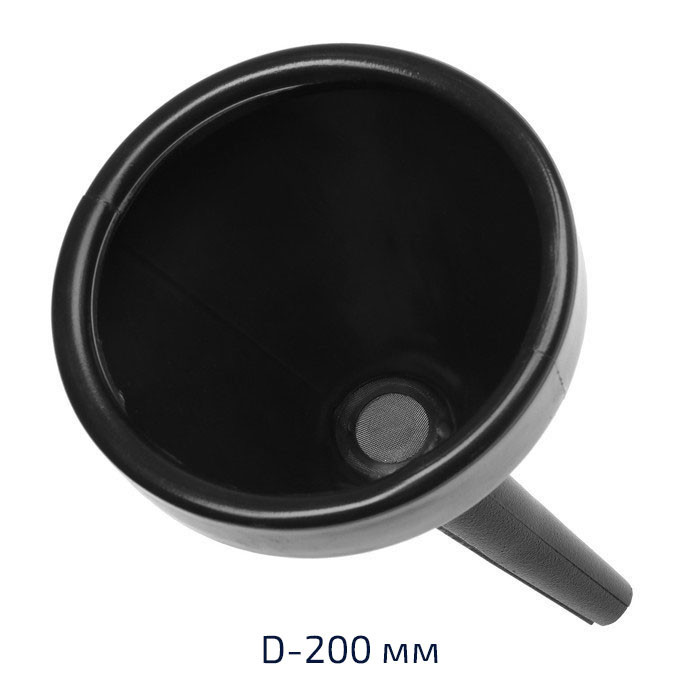 Воронка пластиковая D-200, высота 340, с сито, неразборная, полиэтилен.Данная воронка поможет аккуратно перелить жидкости, бензин.Незаменимая вещь в каждом авто, в каждом гараже. Воронка очень проста и удобна в использовании.Используется для переливания жидкостей в емкости с тонким горлышком или для заливания горючих материалов в бак автомобиля.Материал устойчив к воздействию агрессивных технических жидкостей, а именно: топливо, кислоты, щёлочи, растворы солей.Воронка с фильтрующей сеткой, которая предотвращает попадания различных материалов.Высокие борта предотвращают разбрызгивание.Длинный тонкий носик позволяет заливать жидкости в емкости с узкой горловиной. Плотно прилегает к кузову автомобиля благодаря скошенному носику.Неразборная, материал -полиэтилен, внешний диаметр 200 см, внутренний диаметр — 17 см, высота 34 см, сеточка в комплекте.