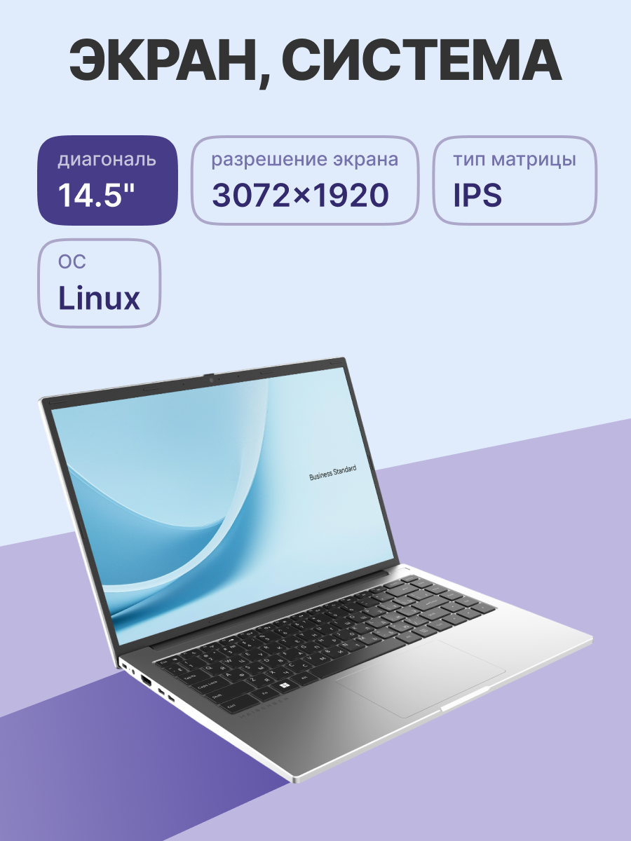• Экран: 14.5-дюймовый IPS-дисплей с матовой поверхностью и разрешением 3072x1920 пикселей (2K).