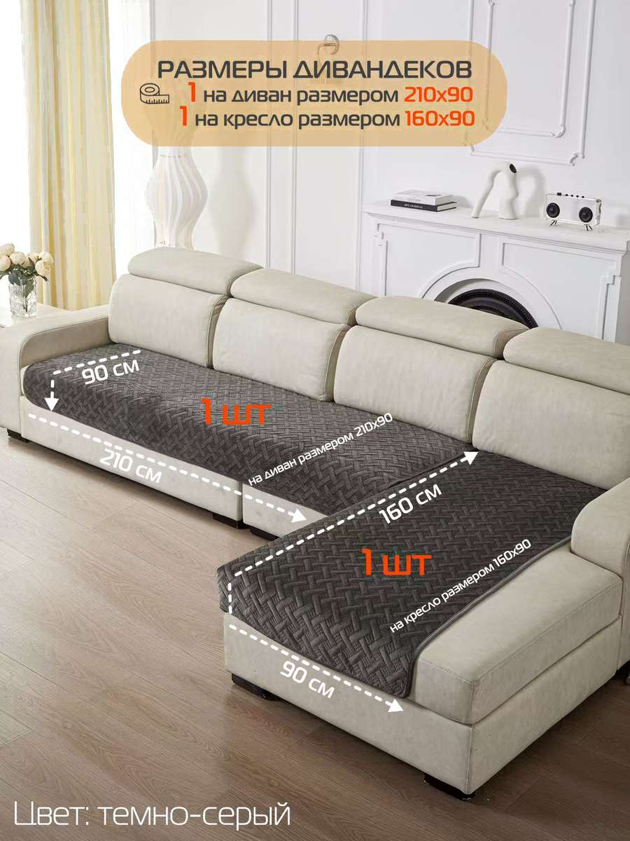 Комплект накидок на диван MATEX Дивандек / 65-807 (2шт, темно-серый)