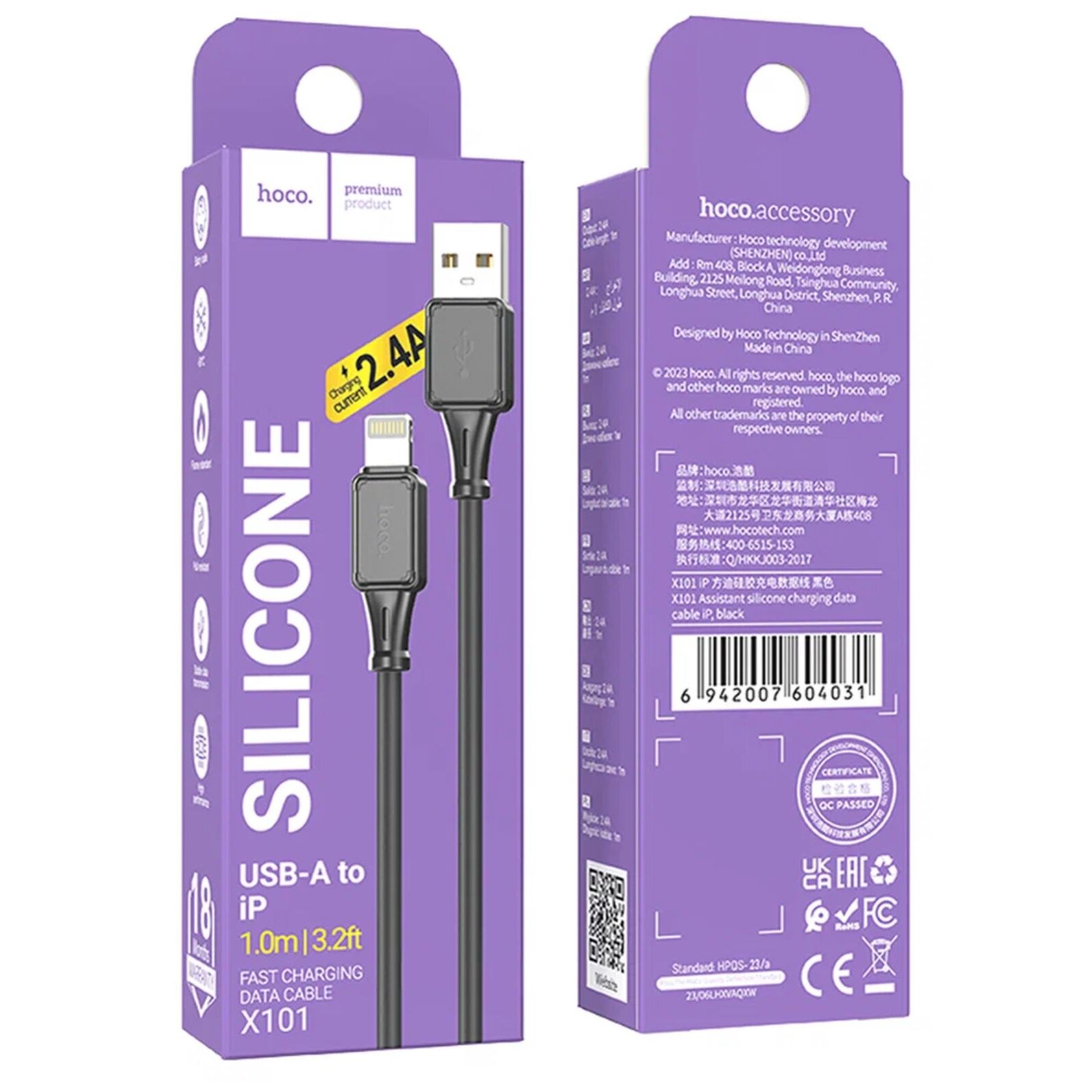 Дата-кабель HOCO X101 Assistant silicone charging Lightning, 1м (черный)