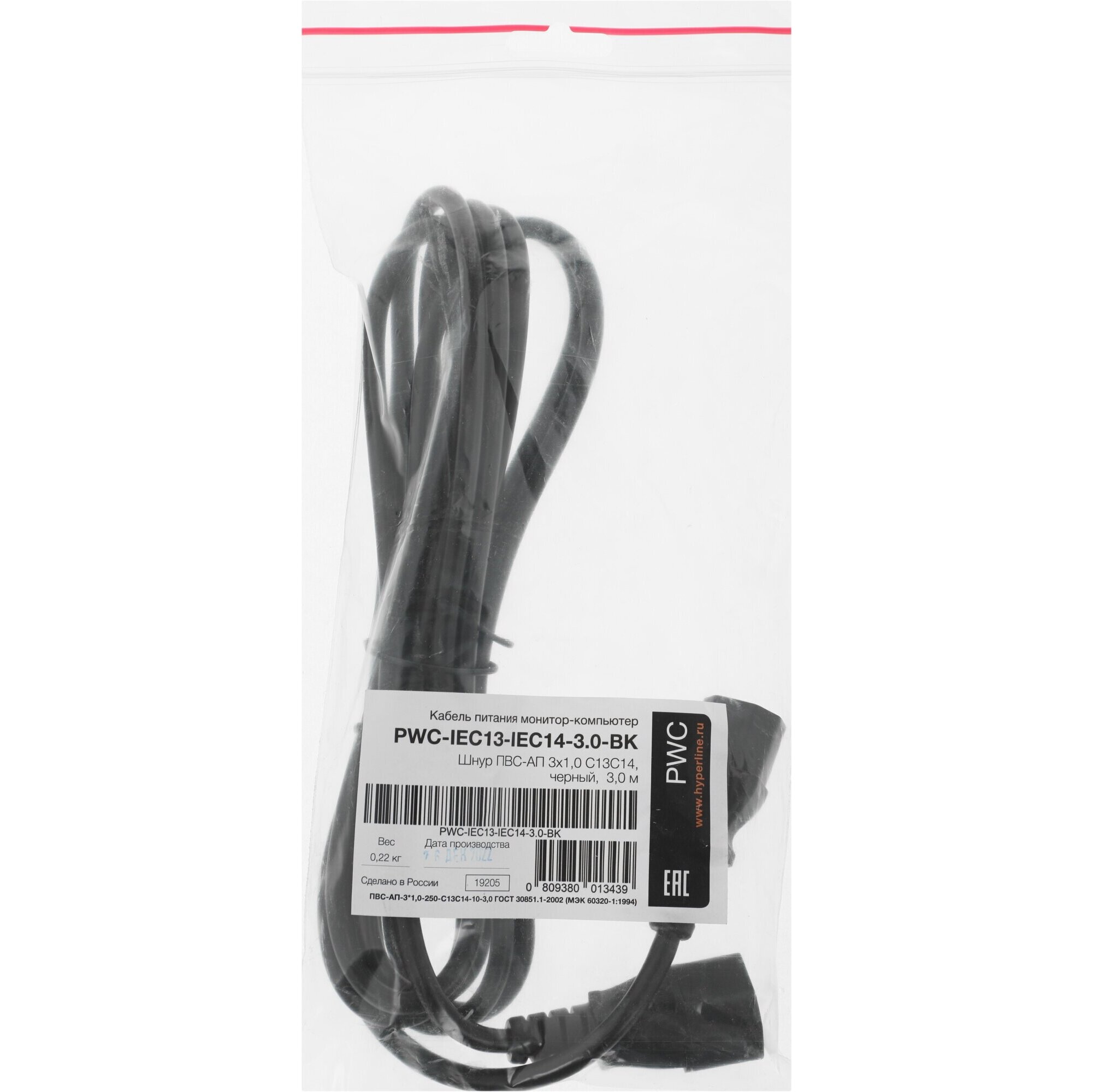 Кабель питания Hyperline PWC-IEC13-IEC14-3.0-BK монитор-компьютер IEC 320 C13 - IEC 320 C14 3x0.75 3м