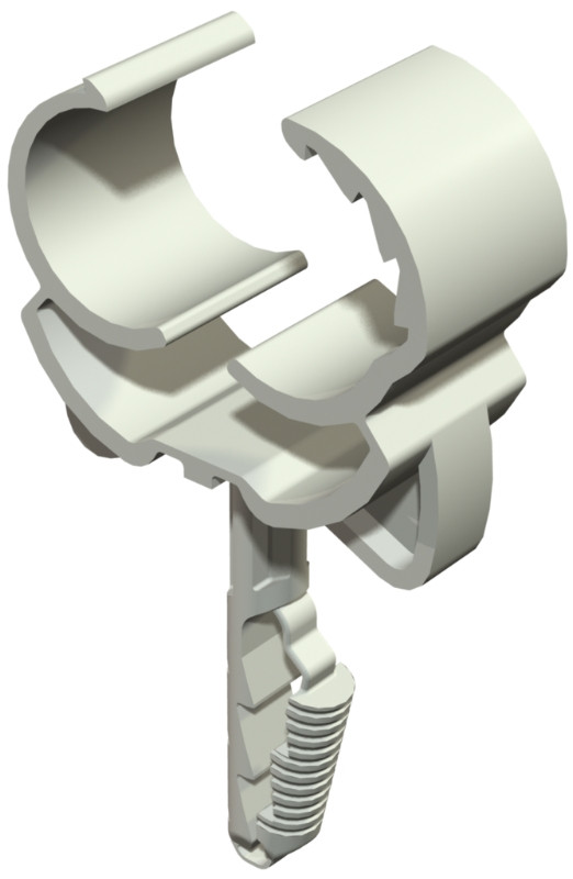 Зажим Klick-Snap со вставным дюбелем для быстрой установки в бетонных и кирпичных стенах. При монтаже необходимо вставить дюбель в отверстие, слегка надавить; когда вставляется труба, лапки зажима защелкиваются и фиксируются вокруг нее.