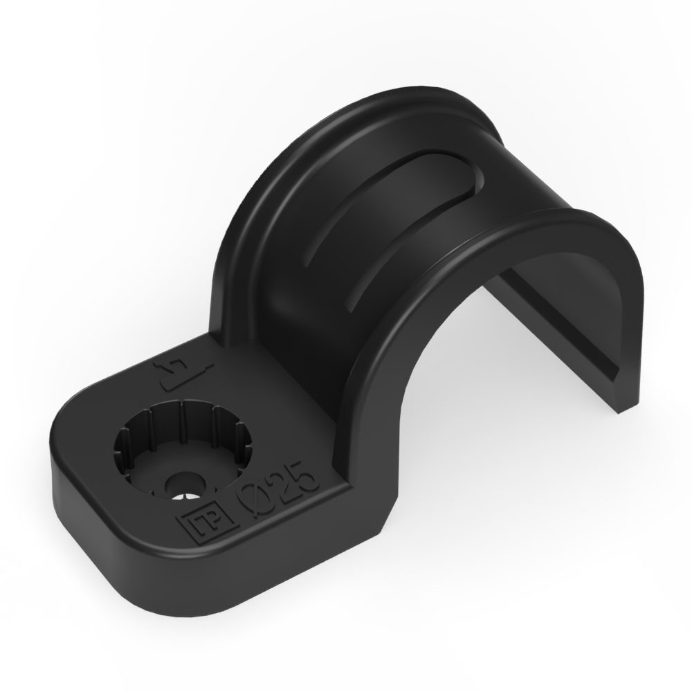 Крепеж-скоба пластиковая односторонняя для прямого монтажа атмосферостойкая черная в п/э d25 мм 50шт/450шт
